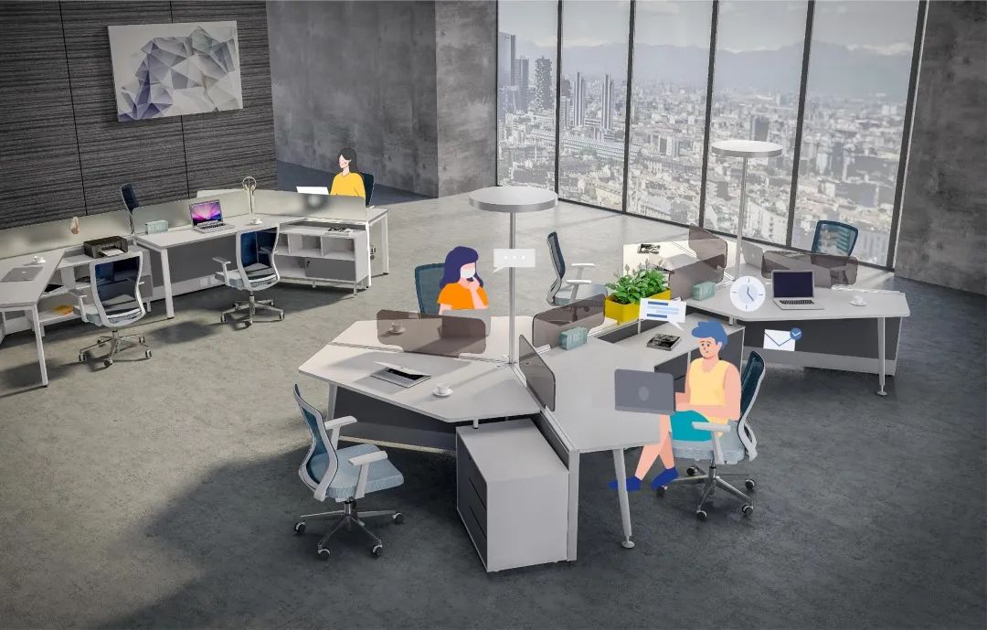 涵蓋職員位、帶背柜主管位的辦公區(qū),超強(qiáng)配套性讓領(lǐng)導(dǎo)與職員之間,減少距離帶來的溝通隔閡,增加一份信任與高效配合,增加團(tuán)隊(duì)工作效能。